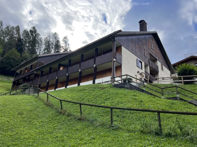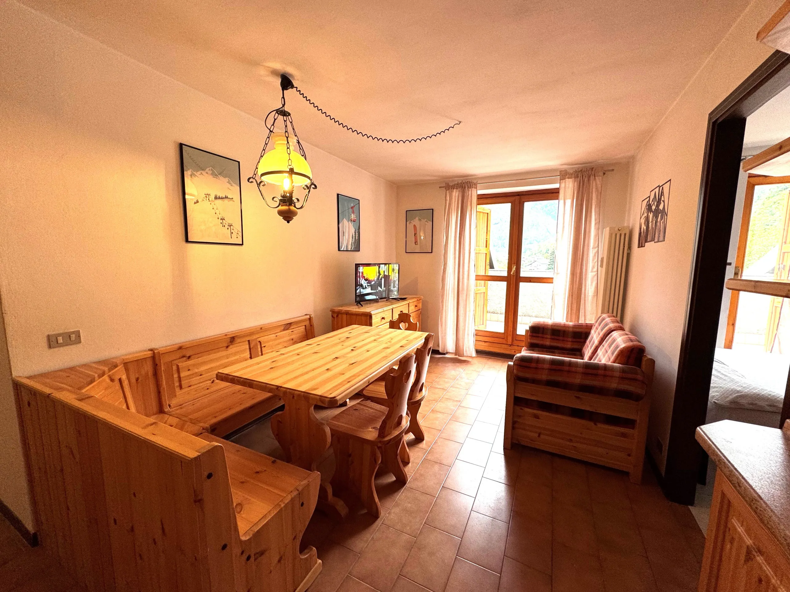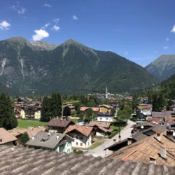 A due passi dal centro di Pinzolo e con un ottima vista sull’intero centro abitato, luminoso appartamento a terzo piano con ascensore. L’appartamento è composto da luminoso soggiorno con angolo cottura, terrazzo a vasca, stanza matrimoniale, stanza con letto matrimoniale e letto a castello e bagno finestrato con vasca e lavatrice. A piano interrato posto auto coperto.