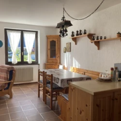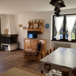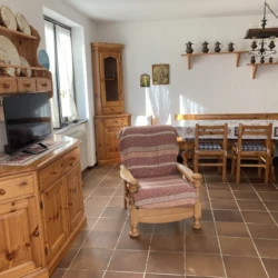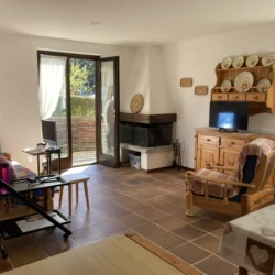 Composto da luminoso soggiorno con camino a legna e accesso diretto al giardino, angolo cottura, disimpegno, due camere da letto e bagno finestrato.