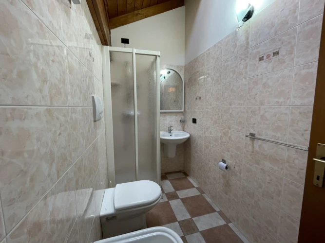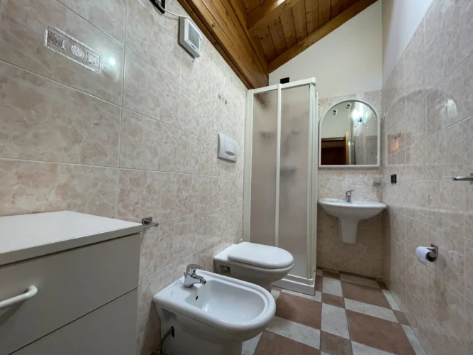 La zona notte comprende una camera matrimoniale, una seconda camera matrimoniale con divano letto aggiuntivo e doppi servizi finestrati, entrambi con doccia.