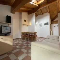 In posizione comoda a tutti i servizi, questo luminoso appartamento al terzo piano mansardato con ascensore offre un’accogliente zona giorno con divano letto, balcone panoramico e angolo cottura.