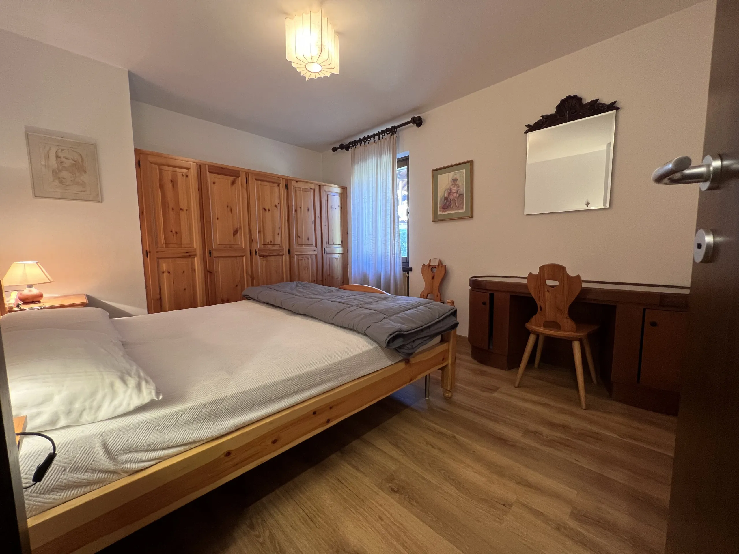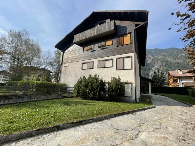 A soli 200 m dal centro di Pinzolo, in posizione tranquilla e immersa nel verde, appartamento a piano terra composto da soggiorno con divano letto per due persone e giardino privato, cucinotto finestrato, stanza matrimoniale, stanza con due letti singoli e bagno finestrato con doccia e lavatrice. L’appartamento dispone di posto auto coperto di esclusiva proprietà.