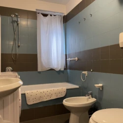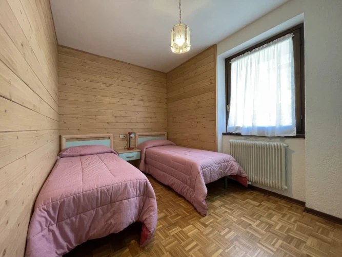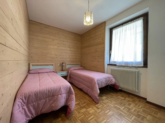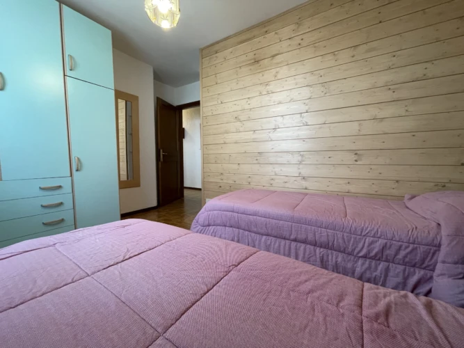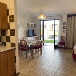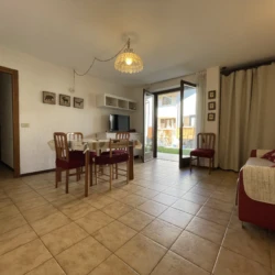 Composto da soggiorno luminoso con angolo cottura, accesso diretto al giardino condominiale, ripostiglio, camera matrimoniale, camera con due letti singoli e bagno finestrato con vasca/doccia e lavatrice.