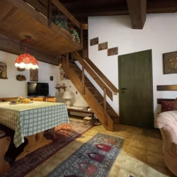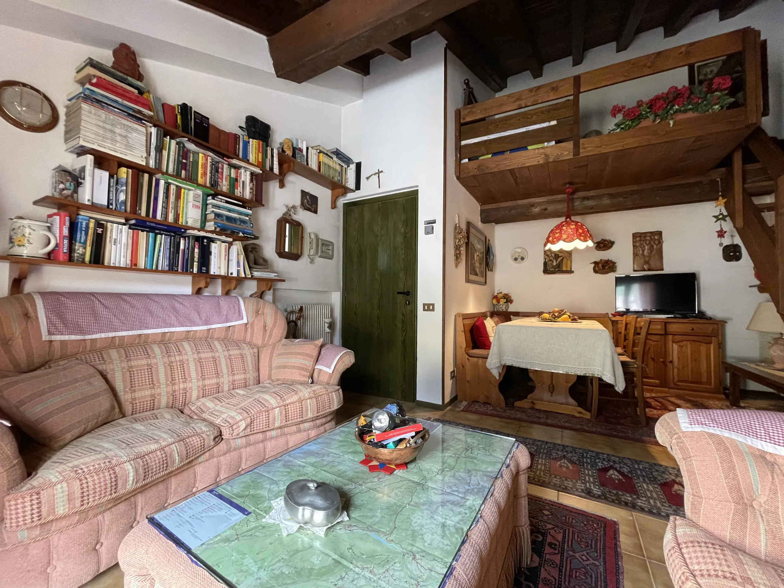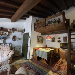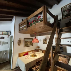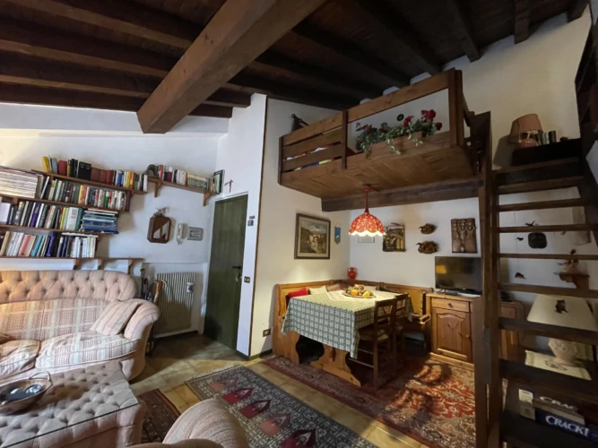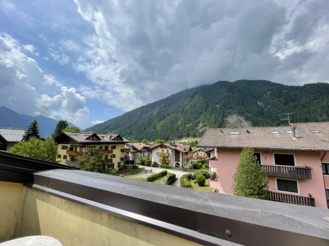 Carisolo, in zona riservata e tranquilla, grazioso bilocale a secondo piano con esposizione sud, composto da ingresso, soggiorno con accesso al balcone a vasca e comodo soppalco con due letti singoli. Disimpegno, cucina con piano a induzione, bagno (non finestrato) e camera matrimoniale. Posto auto di proprietà in garage e posti auto esterni condominiali.