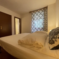 A Pinzolo, appartamento a due passi dalla zona Pineta e comodo al centro del paese. Ubicato a secondo piano con ascensore, questo alloggio è composto da ampio soggiorno con balcone e divano letto matrimoniale, angolo cottura, disimpegno, due stanze matrimoniali e doppi servizi (uno con vasca e uno con doccia). In appartamento sono disponibili un lettino da campeggio ed il seggiolone per bambini. Posti auto pubblici nelle vie adiacenti. Disponibile per locazioni settimanali. Presso questo alloggio NON sono ammessi animali.