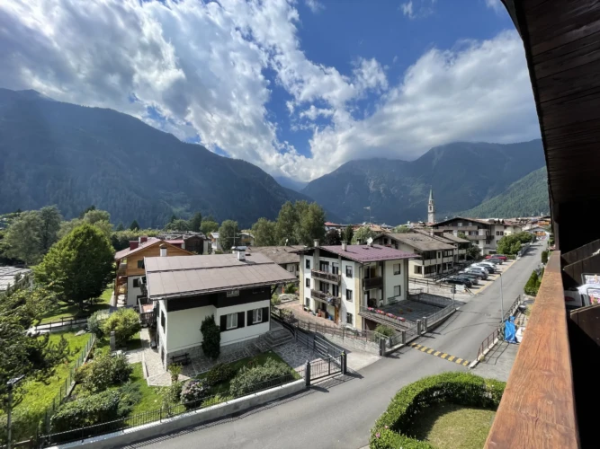 A Pinzolo, in zona residenziale comoda a tutti i servizi, grazioso appartamento bilocale, ubicato a terzo piano, con meravigliosa vista sul paese e le montagne circostanti. Si compone di ingresso, zona giorno luminosa con balcone, angolo cottura e divano letto doppio. Bagno (non finestrato) con doccia e lavatrice; camera matrimoniale con armadio a ponte.