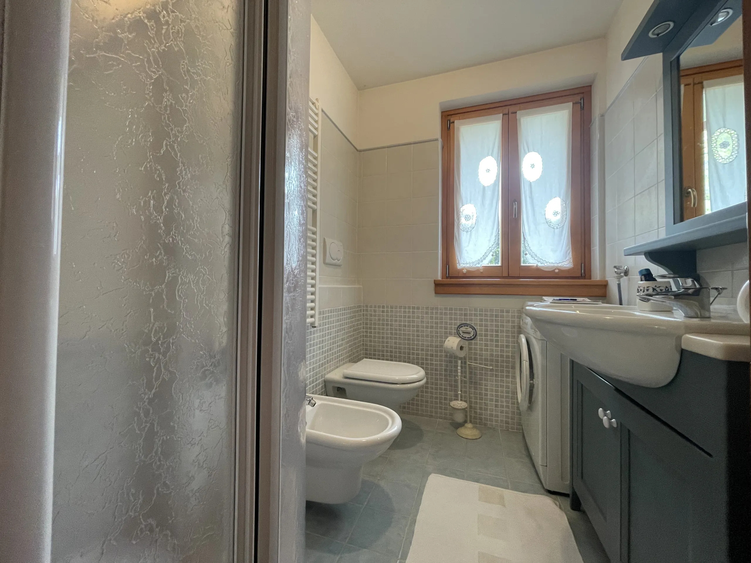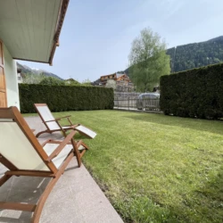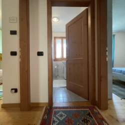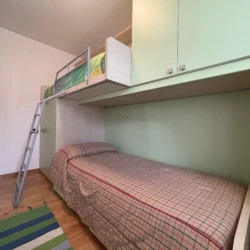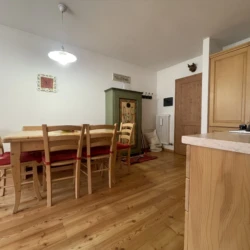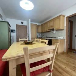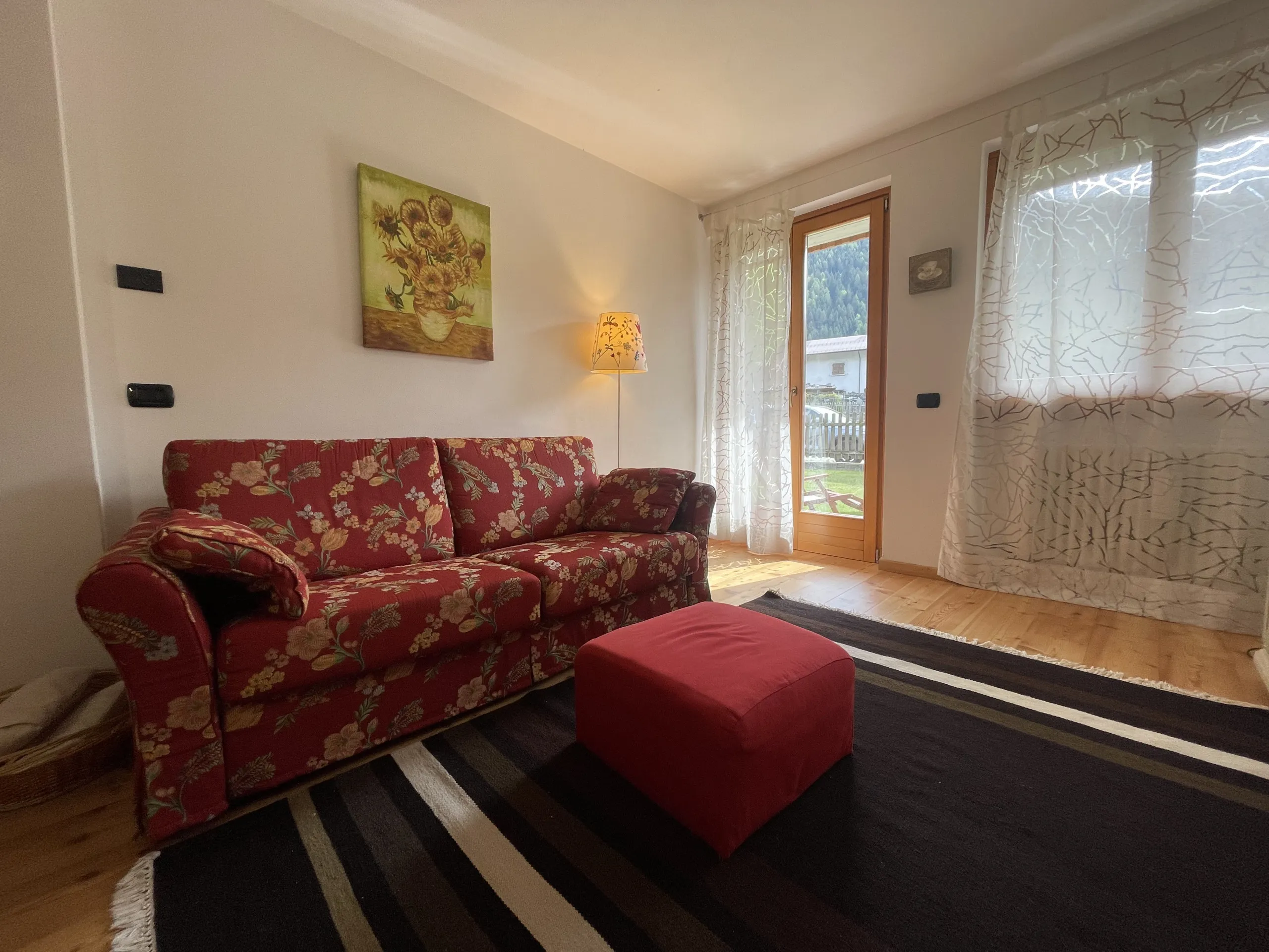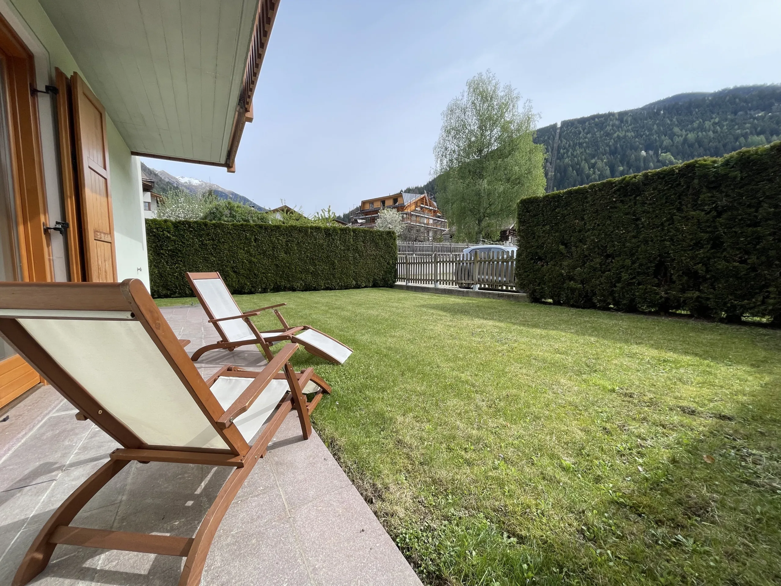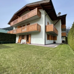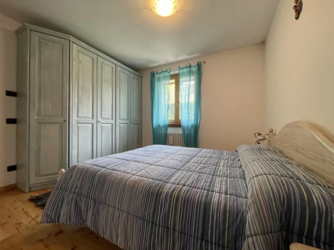 A Pinzolo, in zona tranquilla e riservata, non lontana dalle Funivie di Pinzolo, luminoso appartamento a piano terra composto da ingresso con soggiorno e cucina, porta finestra con accesso a magnifico giardino di esclusiva proprietà; disimpegno per la zona notte, spaziosa camera matrimoniale, bagno finestrato con doccia e lavatrice, infine cameretta con letti a castello sfalsati.