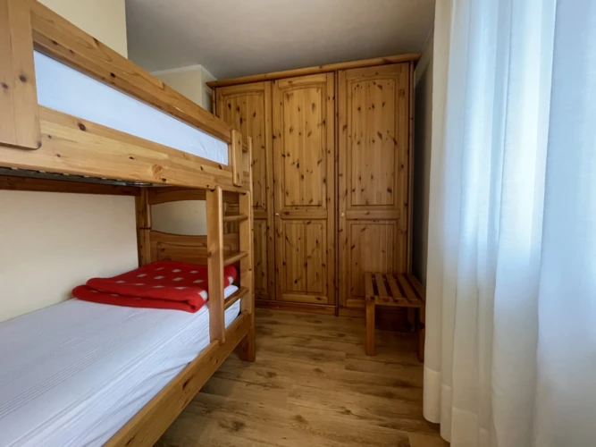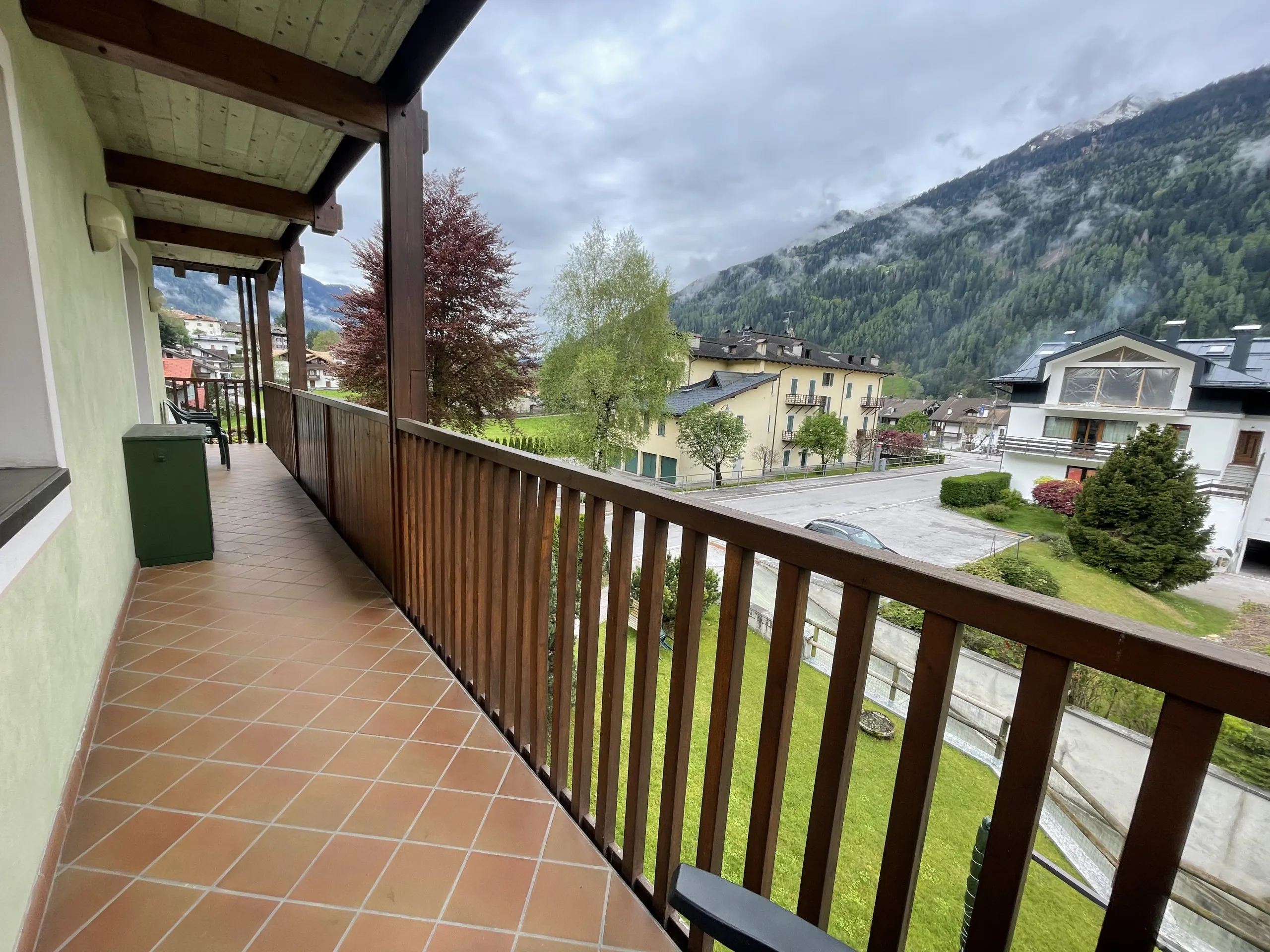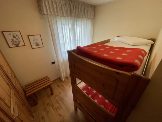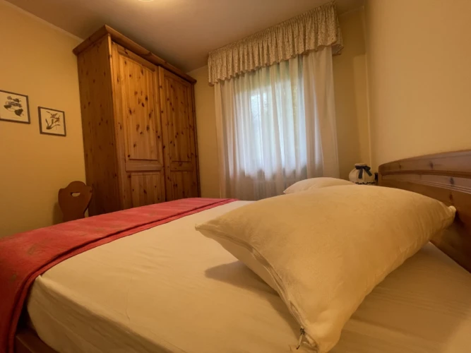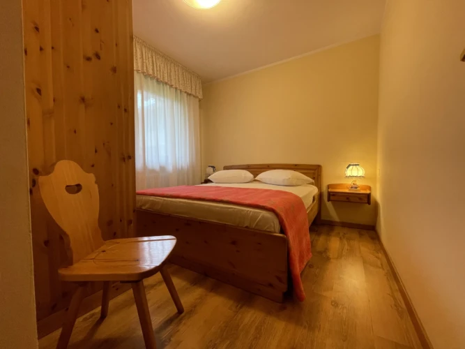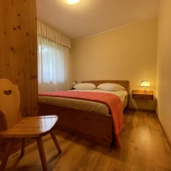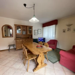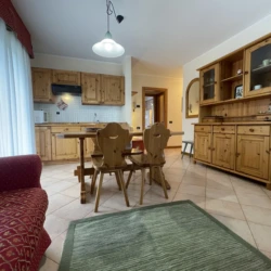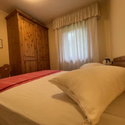 Giustino, a soli 350 mt dal centro di Pinzolo, in posizione estremamente panoramica e comoda ai servizi, ampio e luminoso appartamento a secondo piano con ascensore, composto da ingresso, luminoso soggiorno con divano letto singolo, ampio balcone ad angolo, angolo cottura, disimpegno, stanza matrimoniale, stanza con letto a castello e bagno finestrato con doccia. Esternamente posti auto liberi ad uso comune e ampio giardino. A piano interrato locale lavanderia comune, cantina di esclusiva proprietà e posto auto coperto ad uso esclusivo.