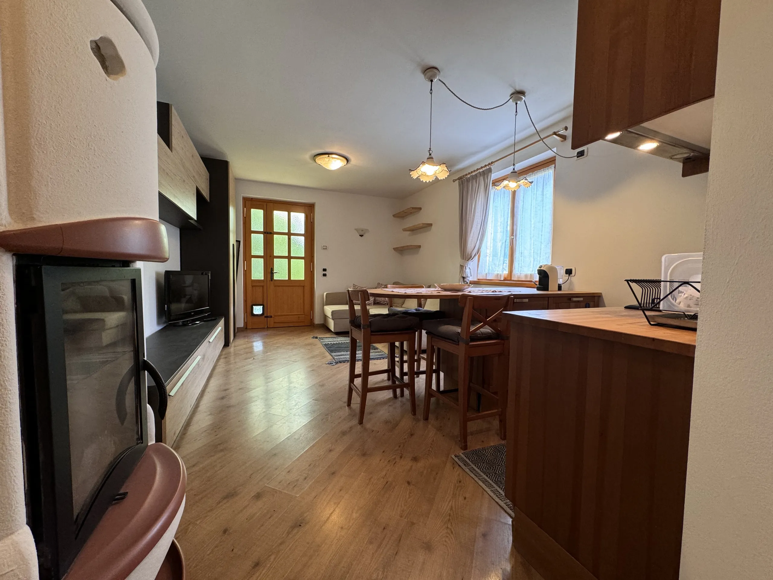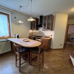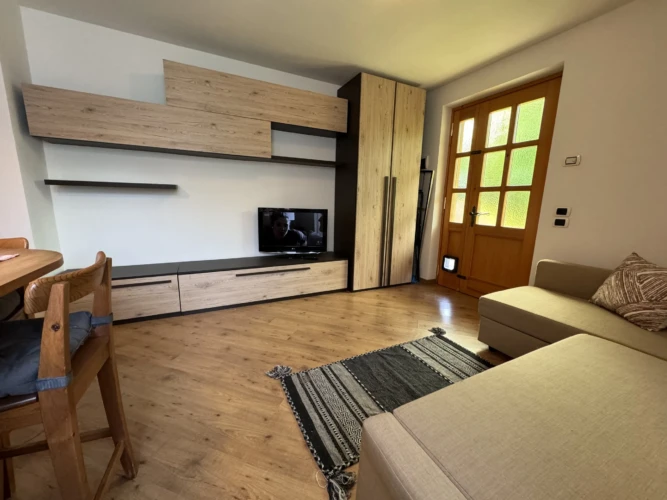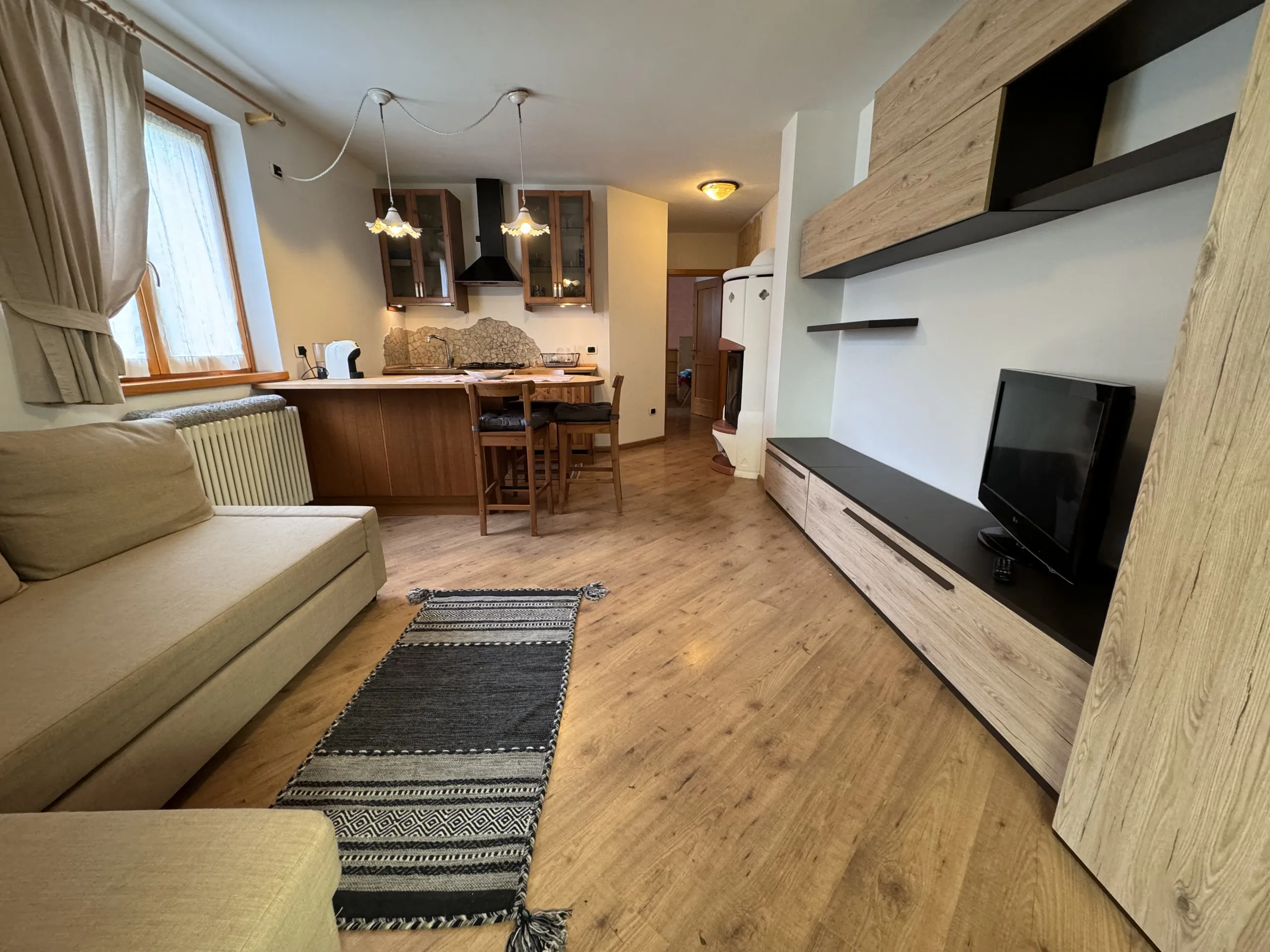 Pinzolo, in posizione sopraelevata ed estremamente tranquilla, appartamento bilocale finemente arredato a piano terra; Internamente composto da ingresso indipendente, zona giorno con divano letto matrimoniale, angolo cottura e stufa, disimpegno, bagno finestrato e stanza matrimoniale. Ampio giardino circostante l’edificio e spazion esterno di esclusiva proprietà. Posti auto esterni.