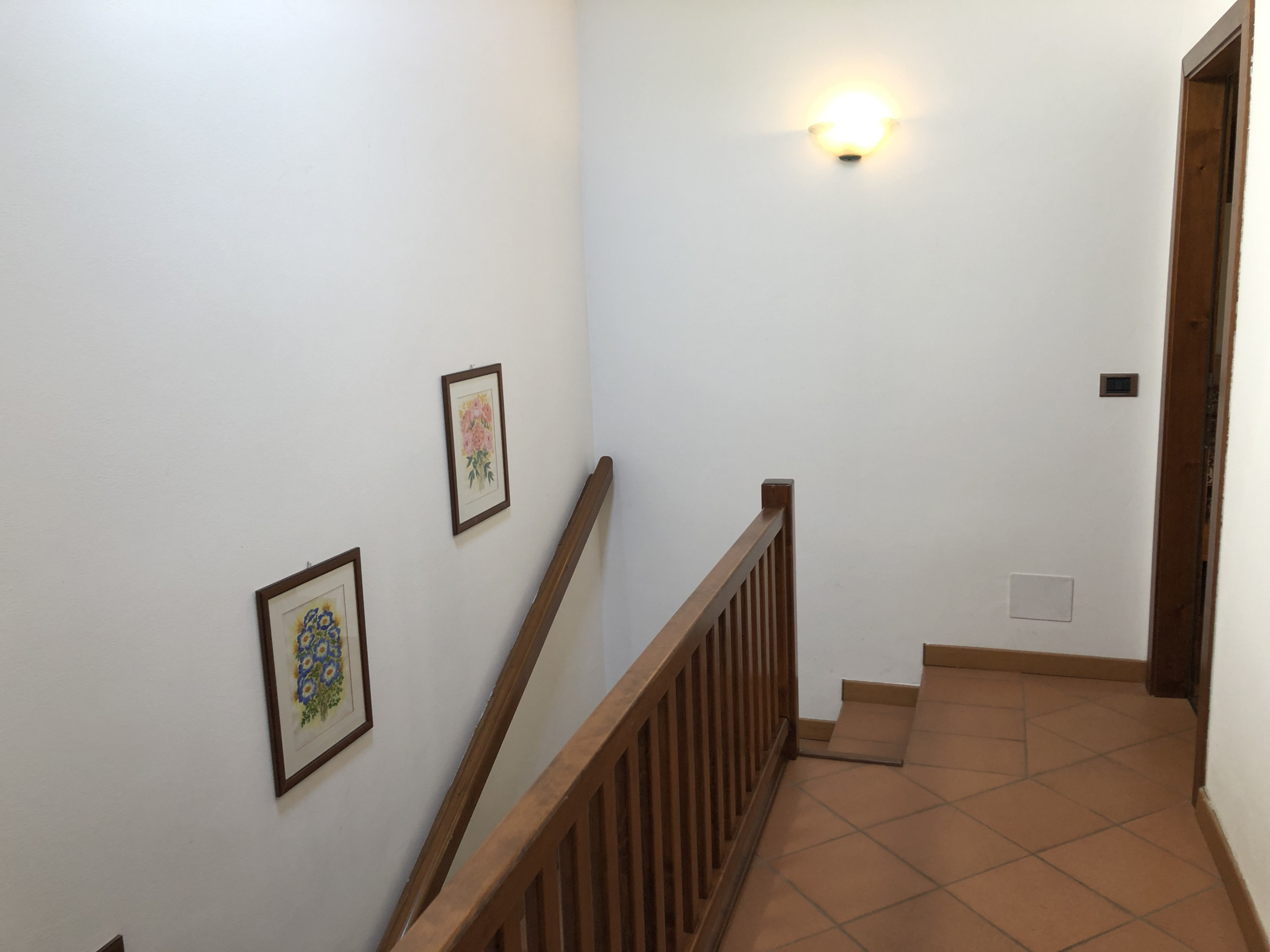 Luminosa zona giorno a piano terra con angolo cottura; a primo piano mansardato la camera matrimoniale, la camera con letti flessibili e il bagno finestrato con doccia e lavatrice completano l’alloggio.