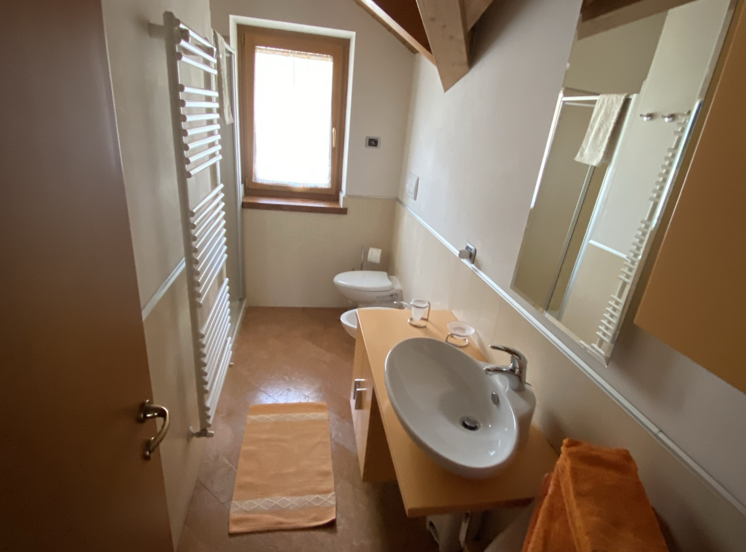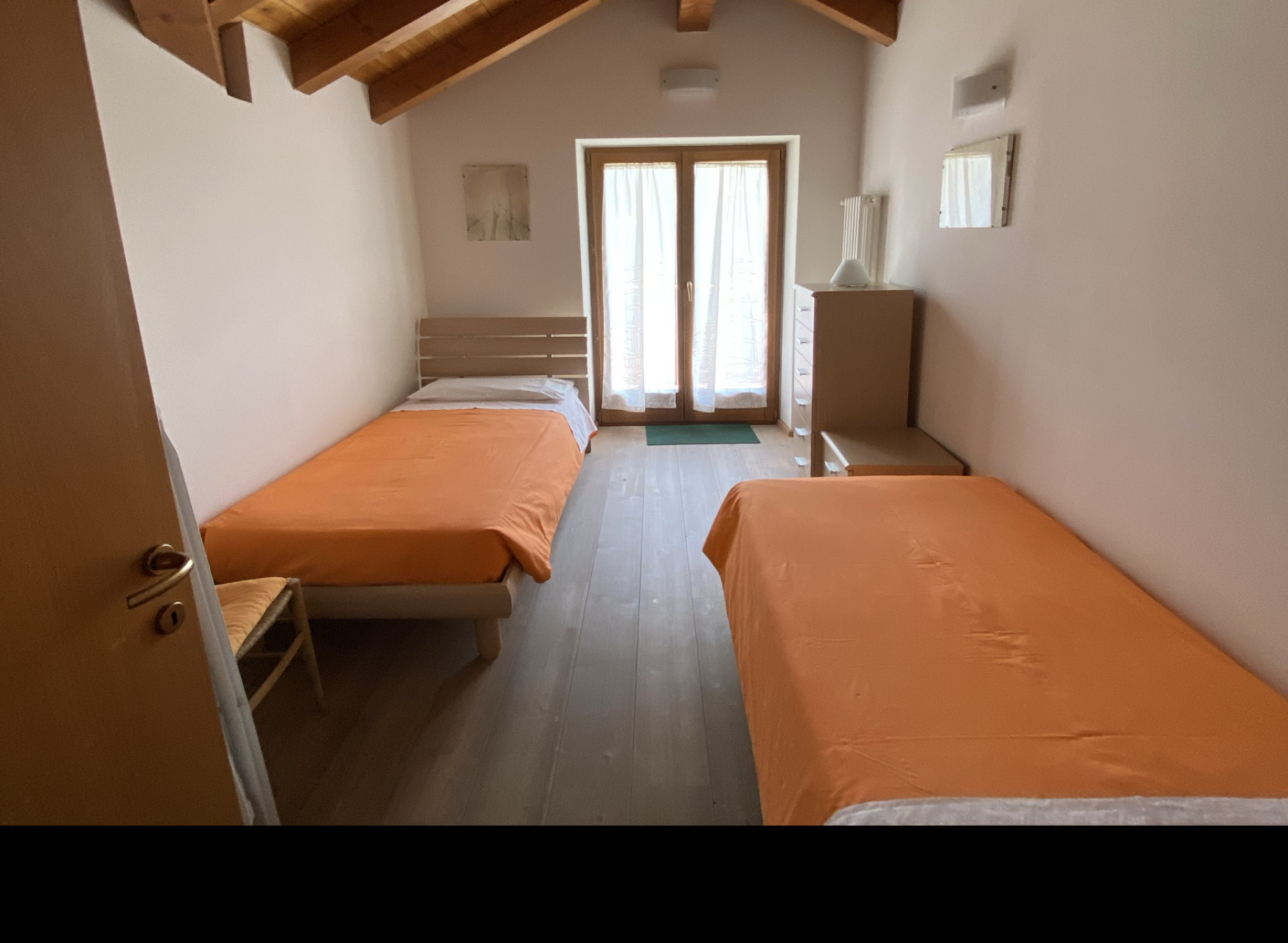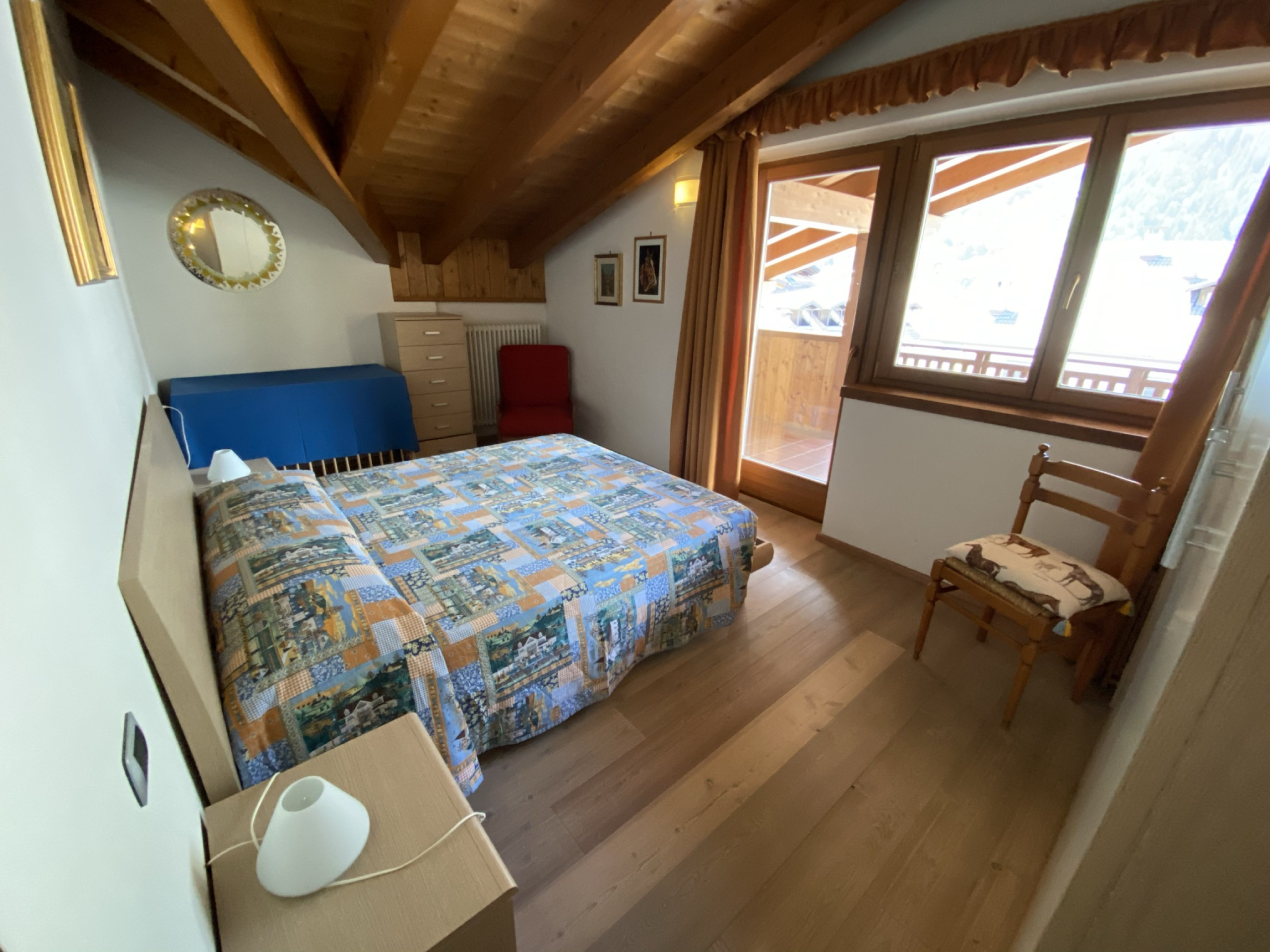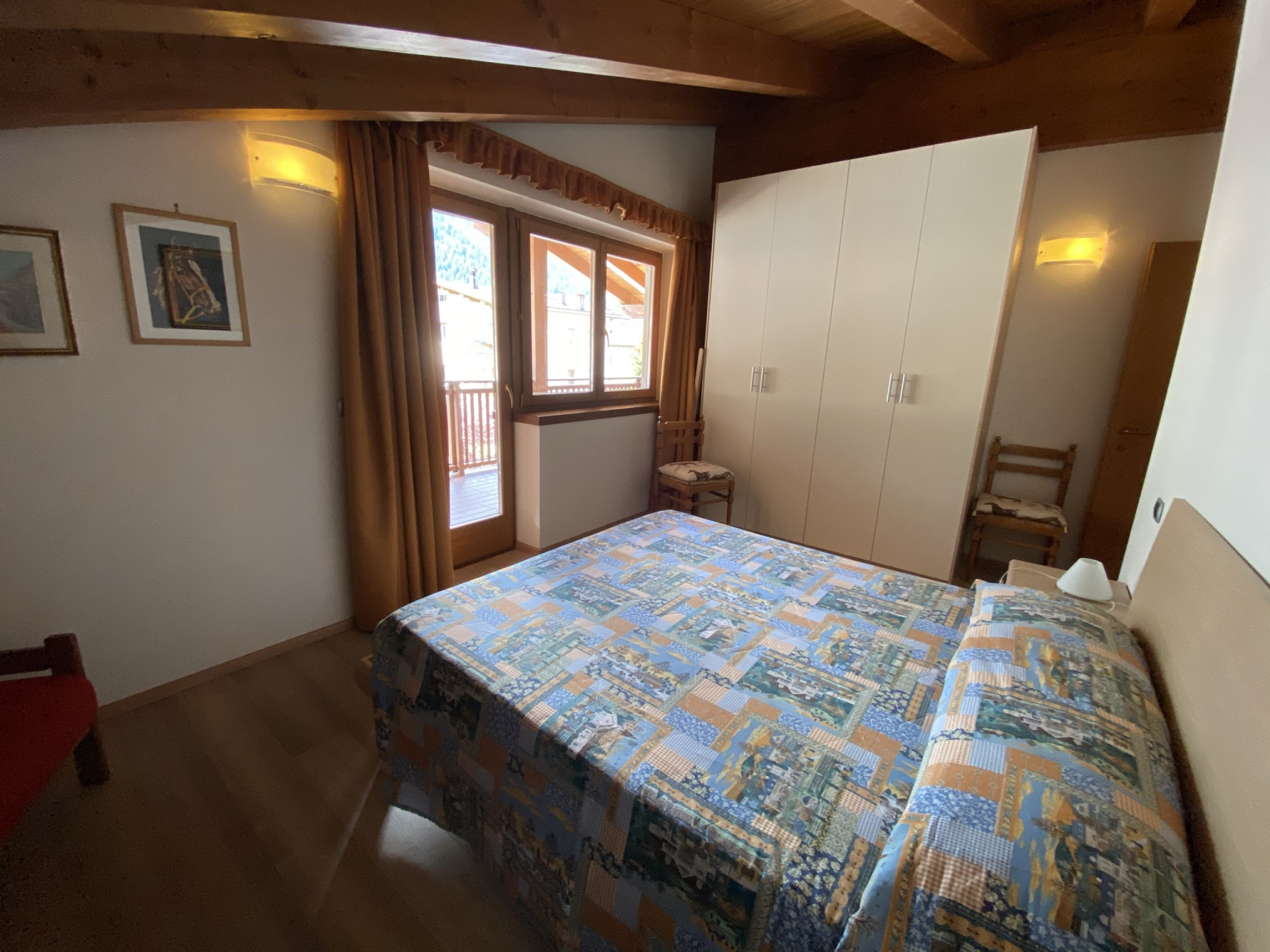 La camera da letto presenta un letto matrimoniale comodo e accogliente, con un divano letto aggiuntivo che offre flessibilità per eventuali ospiti. Il riscaldamento centrale garantisce un ambiente sempre caldo e confortevole, ideale dopo una giornata sugli sci o durante escursioni in montagna.