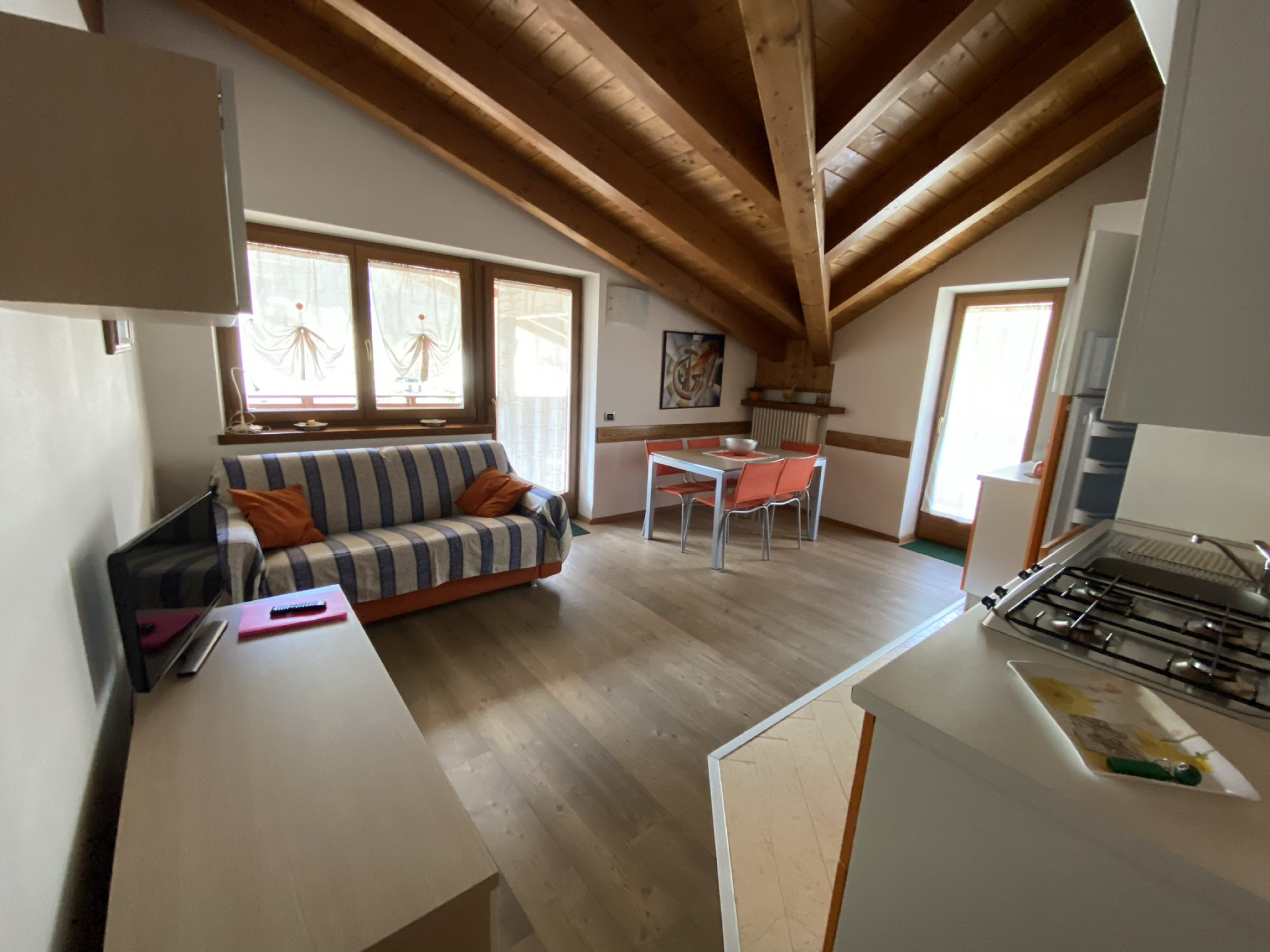 A Pinzolo, in zona residenziale comoda a tutti i servizi, grazioso appartamento bilocale, ubicato a terzo piano, con meravigliosa vista sul paese e le montagne circostanti. Si compone di ingresso, zona giorno luminosa con balcone, angolo cottura e divano letto doppio. Bagno (non finestrato) con doccia e lavatrice; camera matrimoniale con armadio a ponte.