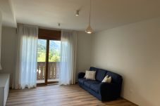 All’inizio dell’abitato di Giustino, in posizione estremamente panoramica e con esposizione sud, questo appartamento al primo piano offre ambienti luminosi e una vista aperta sulla vallata.