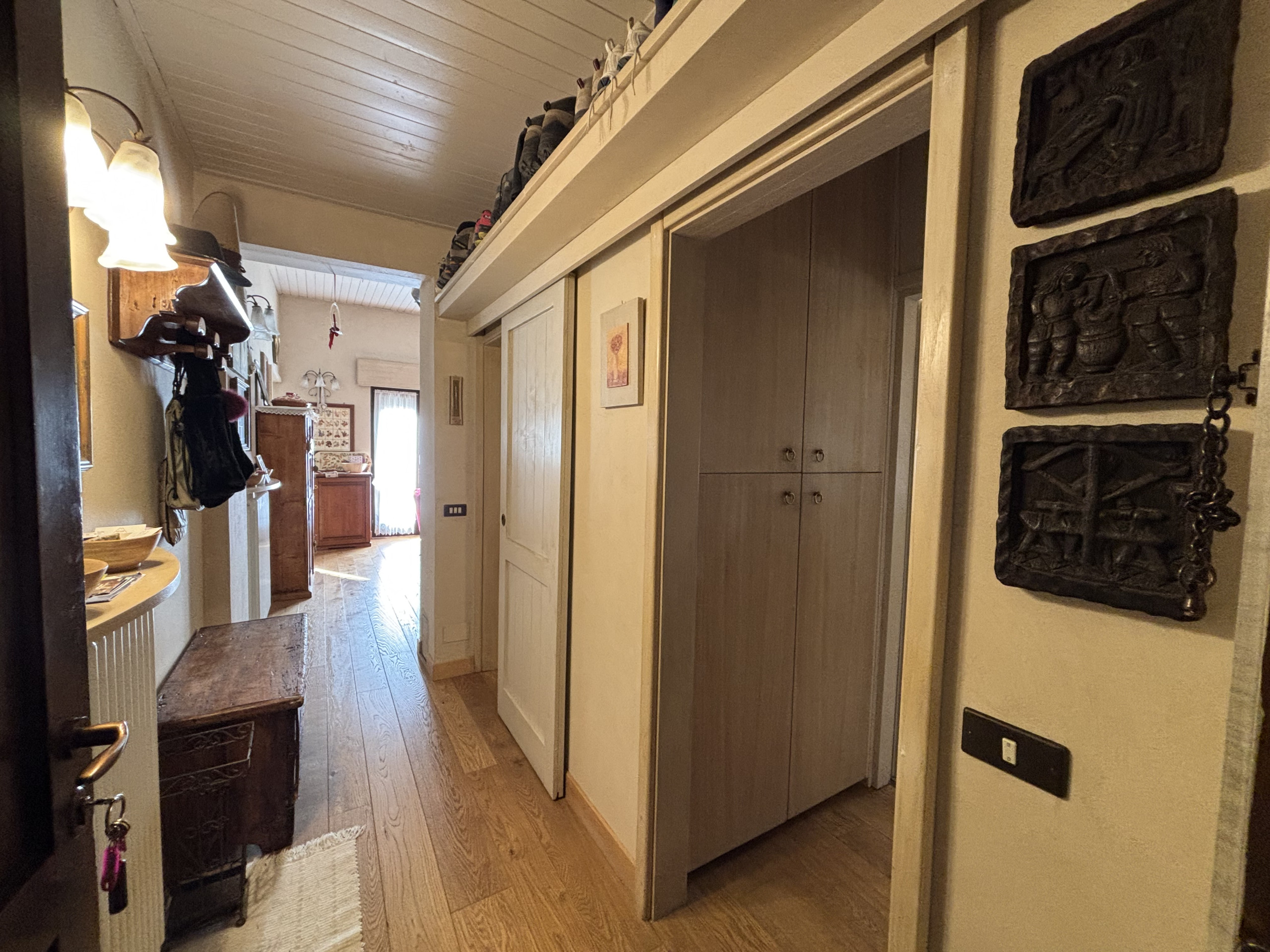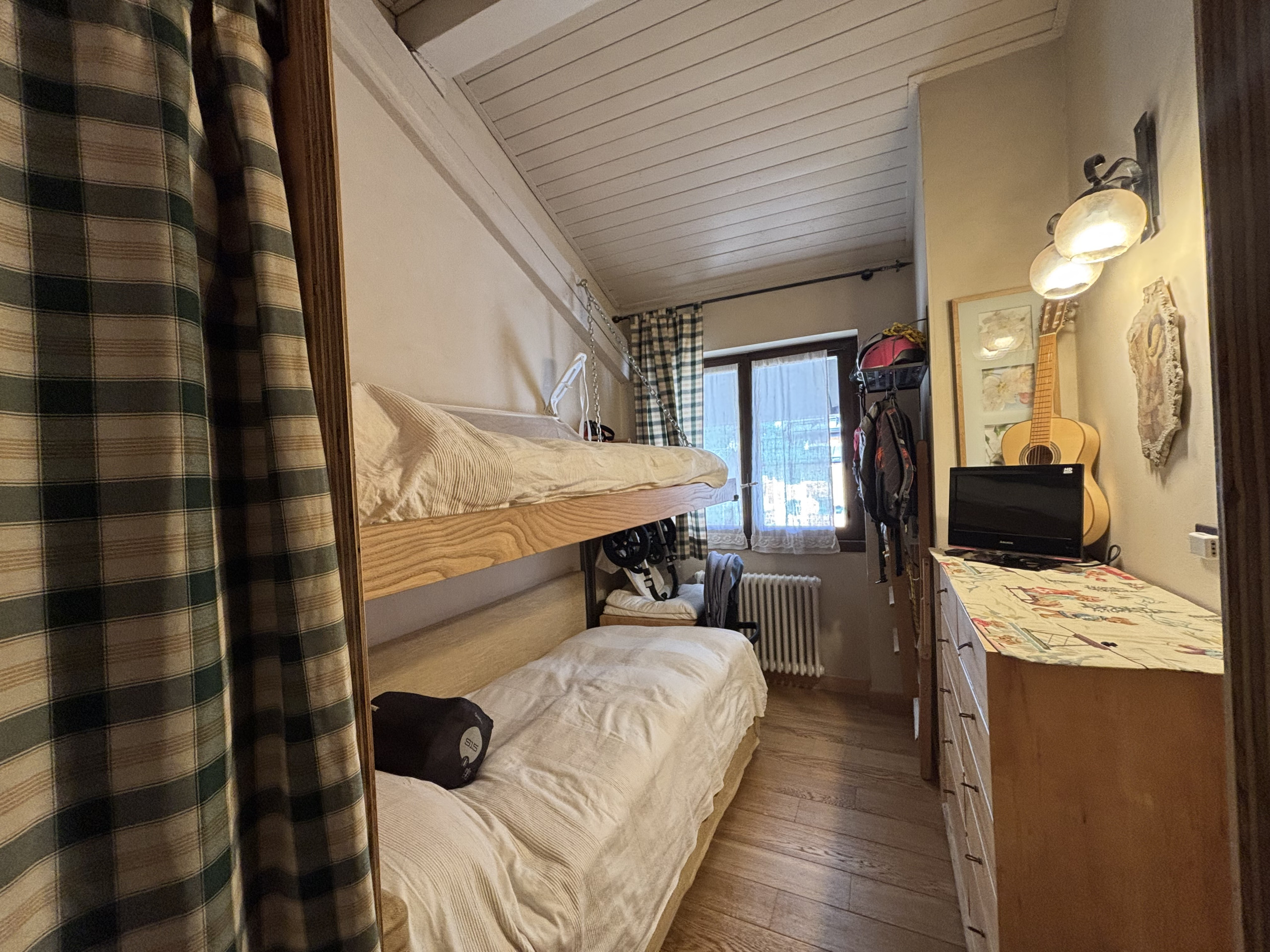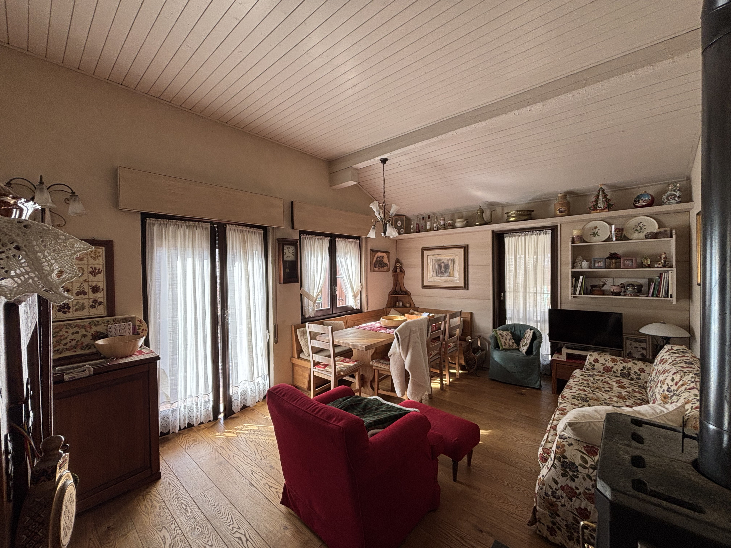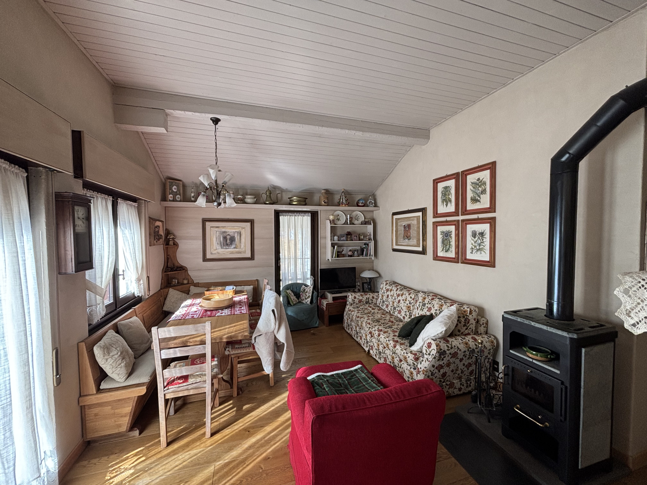 Pinzolo. In condominio composto da 12 unità abitative, Mansarda a secondo piano di 75 mq.ca. comm.li. Accogliente appartamento, composto da ingresso, ampia e luminosa zona giorno con stufa a legna, terrazzo molto assolato, panoramico e spazioso; angolo cottura, bagno finestrato, una camera da letto matrimoniale e una camera per ragazzi ottimamente organizzata ad ospitare nr. tre letti. A piano interrato posto auto coperto e cantina privata. Appartamento molto curato. Edificio del 1975 ca. - Appartamento Ristrutturato parzialmente nel 2003 ca. Riscaldamento Centralizzato a gasolio con conta calorie - Stufa a legna. Ottima esposizione: Sud/Ovest.