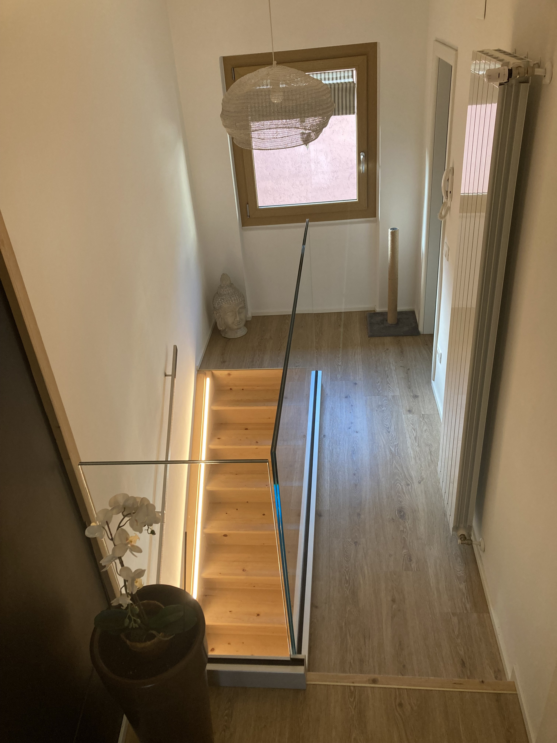 Spiazzo Rendena, Frazione Borzago. Porzione di casa disposta su 2 livelli con soffitta e cantina ad avvolto, 104 mq.ca. comm.li. Area esterna adibita a posto auto. Ingresso privato a piano terra con luminoso soggiorno, cucina abitabile, scale per la zona notte con due ampie camere da letto, un poggiolo, un bagno finestrato con doccia, scala retrattile nel disimpegno per accedere alla soffitta adibita a zona relax e ripostiglio. A piano interrato capiente cantina ad avvolto (mq. 33 ca.) Esternamente Orto (area verde di circa 30 mq.) adibito a posto auto scoperto di proprietà.