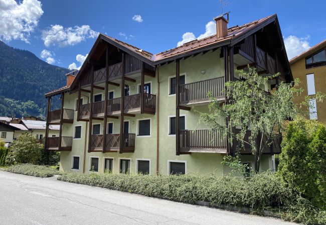 Giustino. In palazzina di 10 unità abitative, trilocale di 60 mq.ca. comm.li a piano secondo. A 300 mt dal centro di Pinzolo. Ingresso, luminosa zona giorno con angolo cottura, disimpegno, bagno...